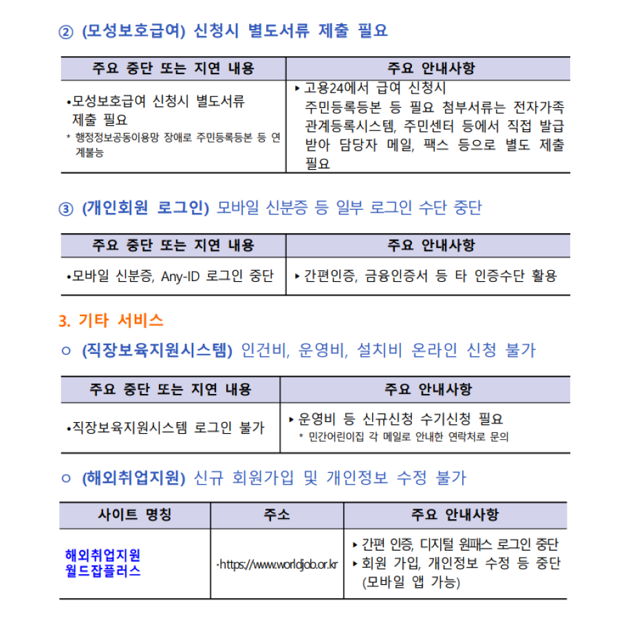 | 국가정보자원관리원 화재로 인한 고용노동부 민원서비스 이용 안내 | |||