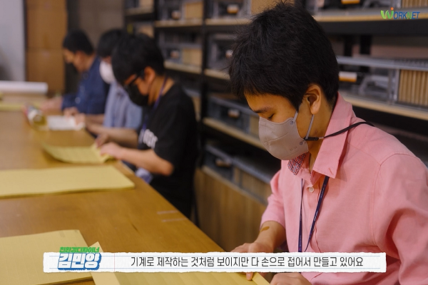 기계로 제작하는 것처럼 보이지만 다 손으로 접어서 만들고 있어요. 발달장애인분들이 다 스튜디오에서 직접 만들고 있고요. 그려진 그림들도 대부분 발달장애인 아티스트분들이 그리고 계세요. 이 제품이 팔릴 때마다 (아티스트에게) 수익의 30%가 배분되는데, 처음에 이것을 시작할 때는 수익의 30%가 배분되는 게 많이 팔리지 않았으니까 미미했는데 지금은 이제 그것이 몇 년이 쌓이니까 웬만한 중견작가 그림 하나보다 더 비싸더라고요. 비싸게 팔린 거죠. 그림은 팔리면 끝이지만 이것은 팔리는 한 (수익이) 계속되는 거죠. 그래서 제가 생각하는 상생의 지속 가능한 안정적인 경제시스템이 조금씩 현실화되고 있는 것 같아서 굉장히 뿌듯하게 생각합니다.