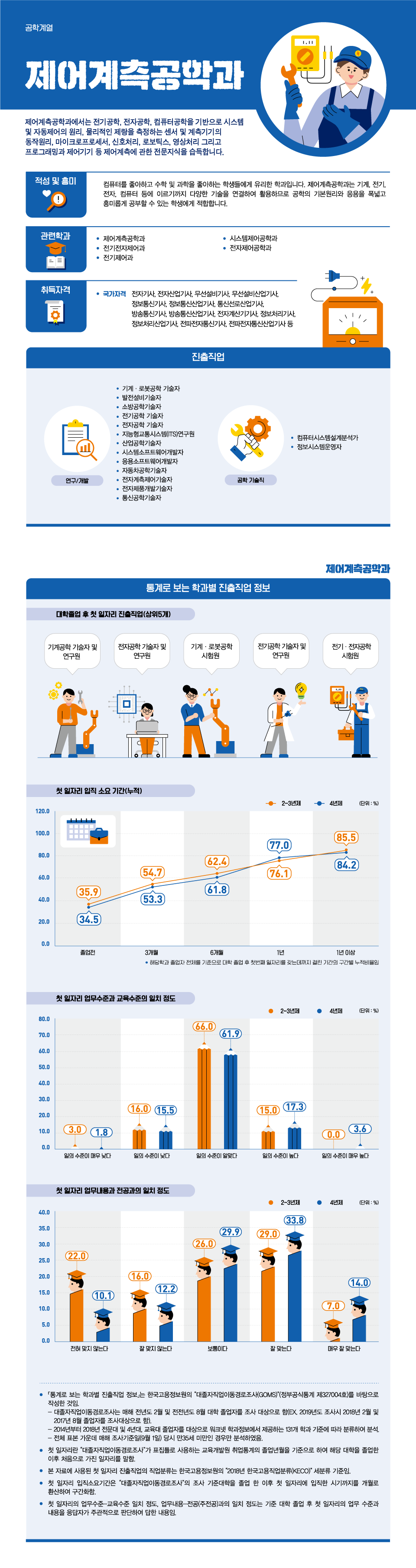첫 일자리의 업무수준-교육수준 일치 정도, 업무내용-전공(주전공)과의 일치 정도는 기준 대학 졸업 후 첫 일자리의 업무 수준과 내용을 응답자가 주관적으로 판단하여 답한 내용임.
