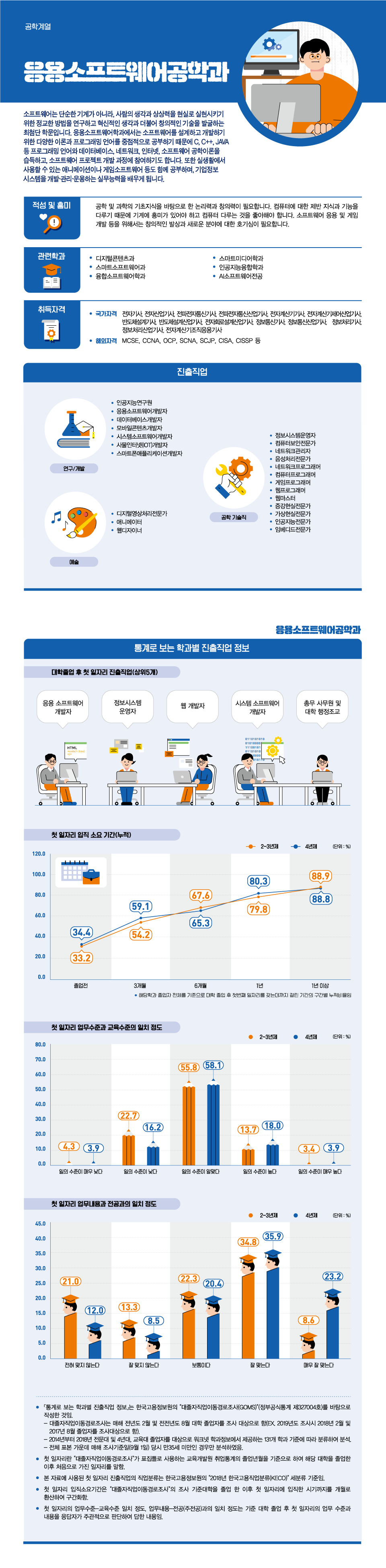 ┌통계로 보는 학과별 진출직업┘ 정보는 한국고용정보원의 "대졸자직업이동경로(GOMS)"(정보공식통계 제 327004호)를 바탕으로 작성한 것임.