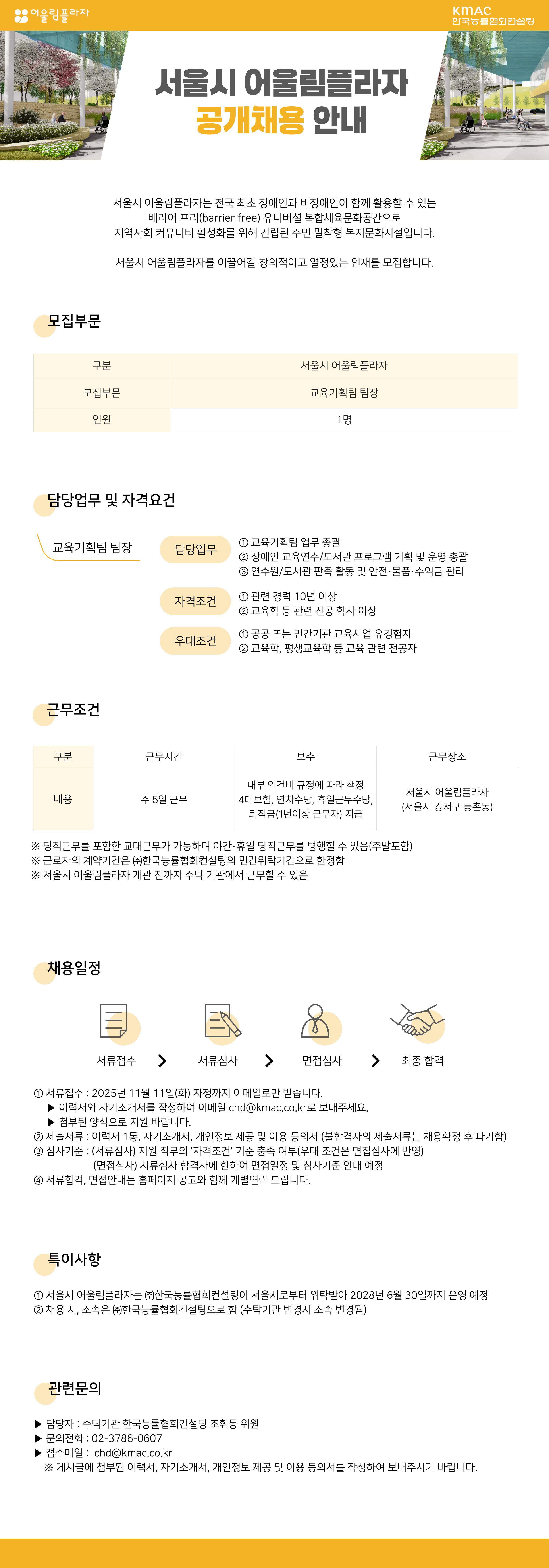 [자사이력서양식] 교육기획팀장-채용공고-001.png [자사이력서양식] 지원분야_이름_이력서 (서울시 어울림플라자).hwp |