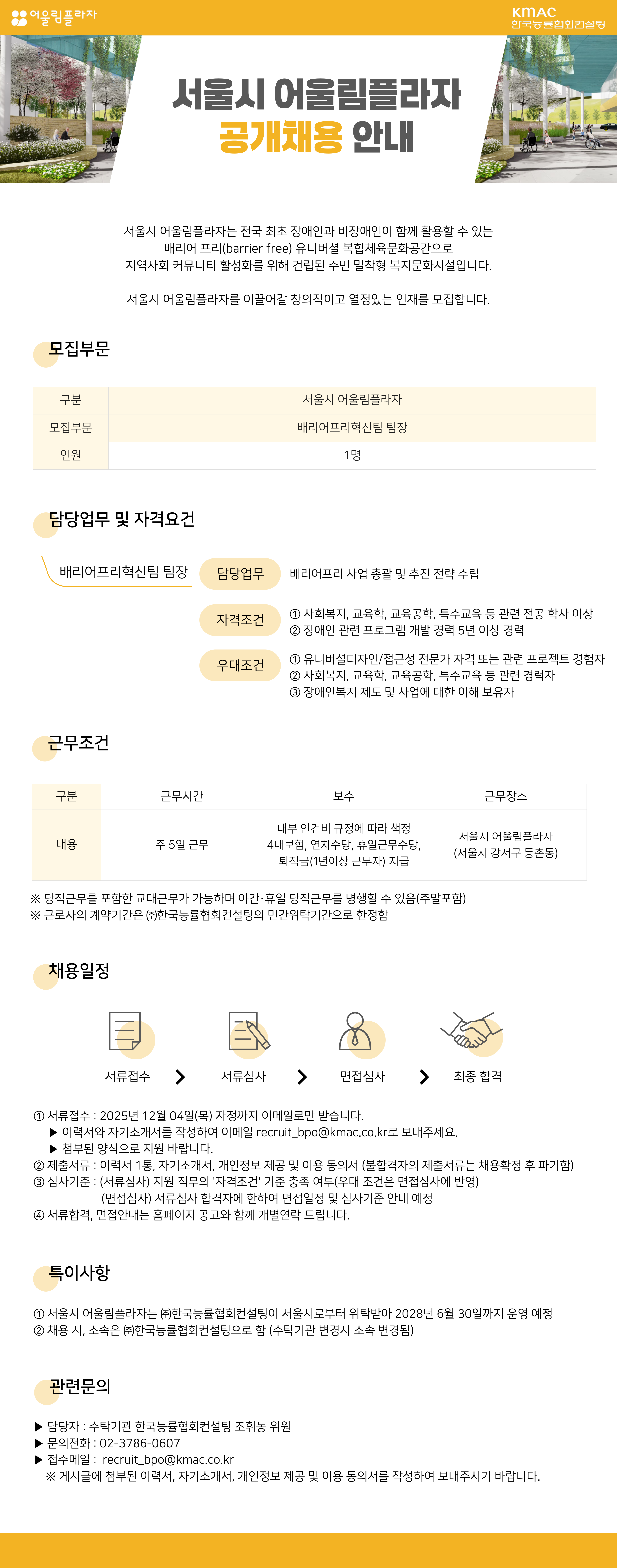 서울시 어울림플라자 배리어프리혁신팀 팀장 공개채용 재공고