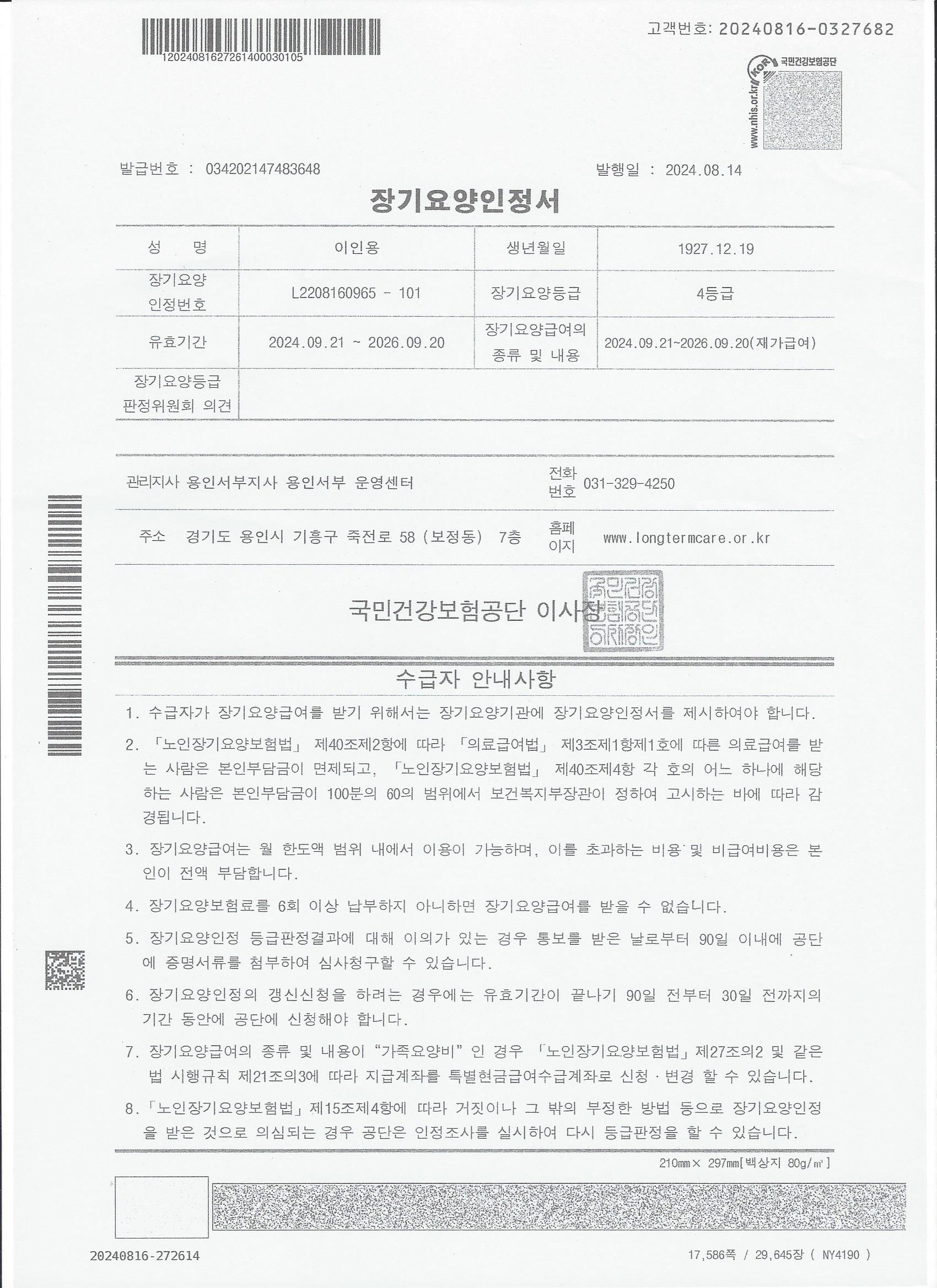 용인흥덕마을3단지 4등급여자어르신 요양보호사 구함