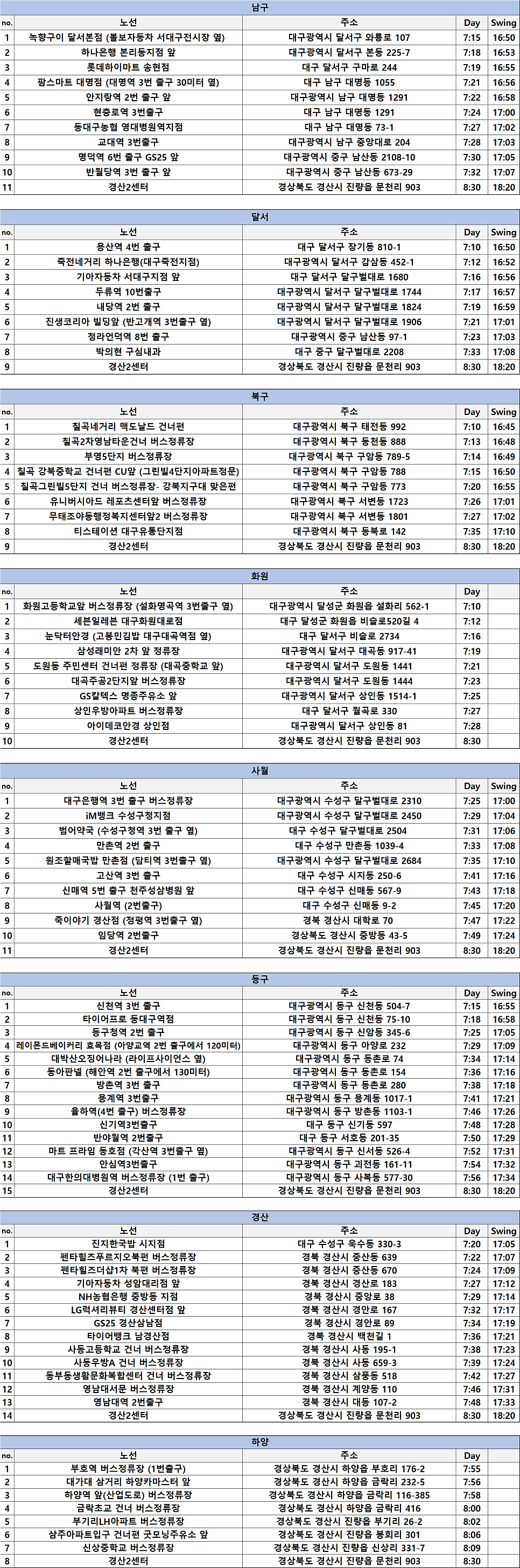 기타(★쿠팡 경산 물류센터 통근차량 노선표★) |