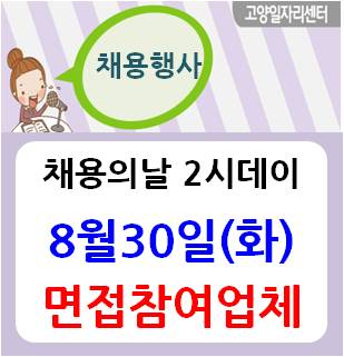 | 고양시 일자리센터(마두동KT 2층)- 채용의 날 2시데이(8/30 오후 2시) | |||||